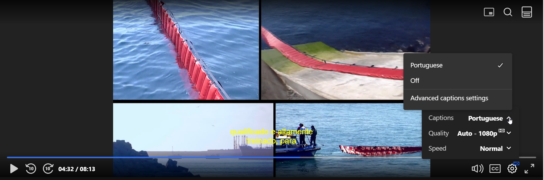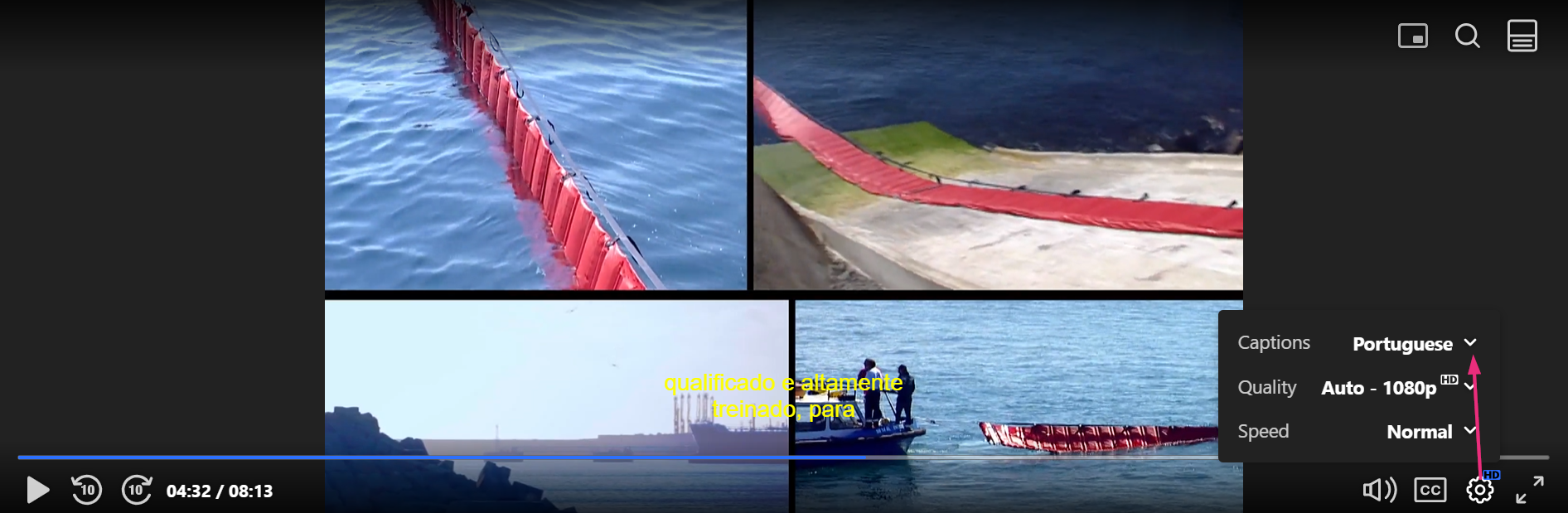 - Click the gear icon at the bottom right of the player to open the settings menu.