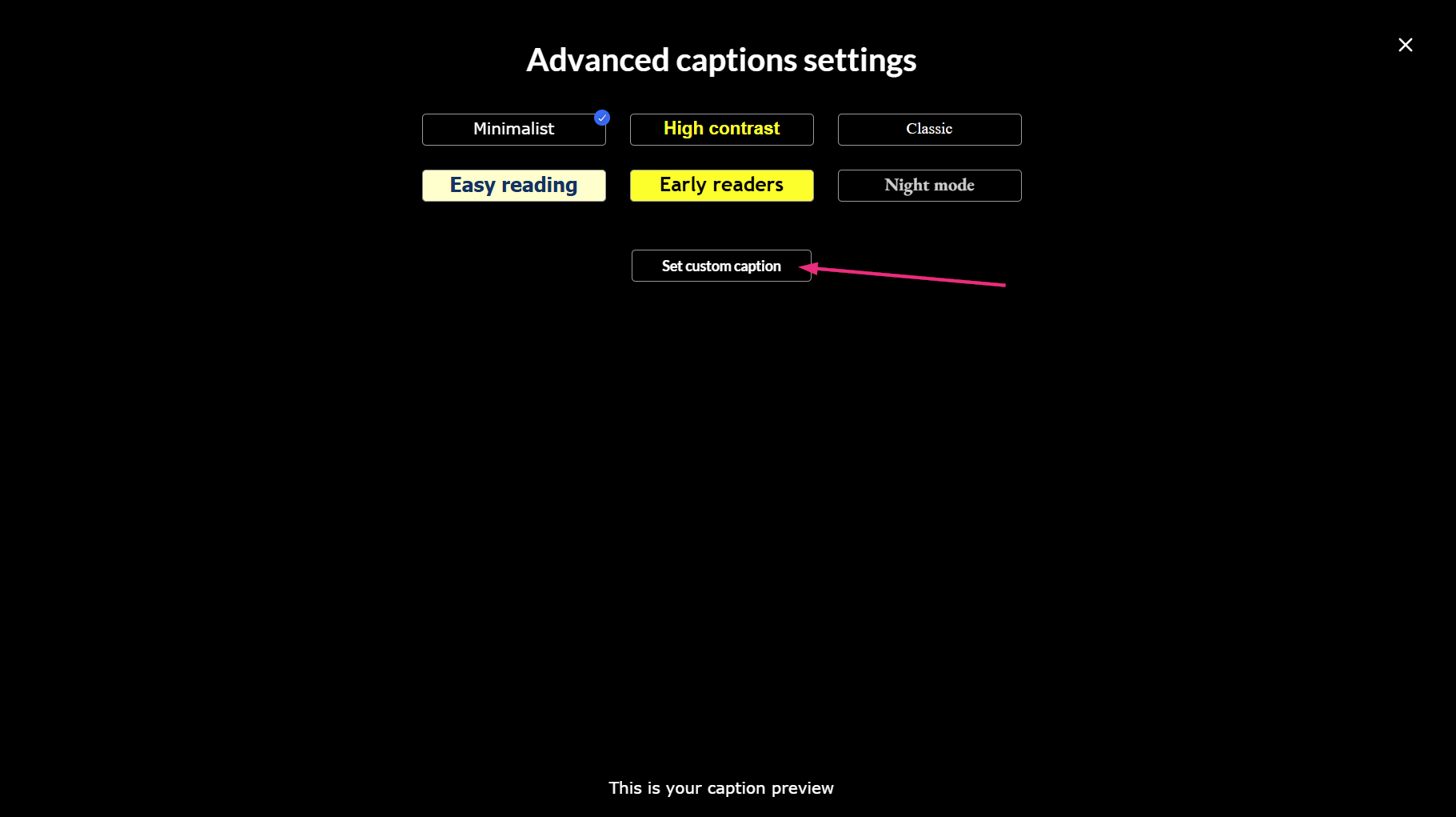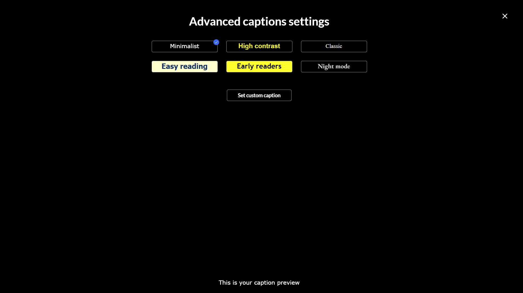 - Choose one of the pre-set caption styles: