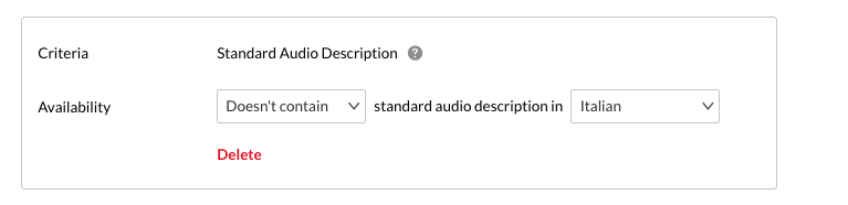 This example selects media that does not contain a standard audio description in a specific language (Italian).