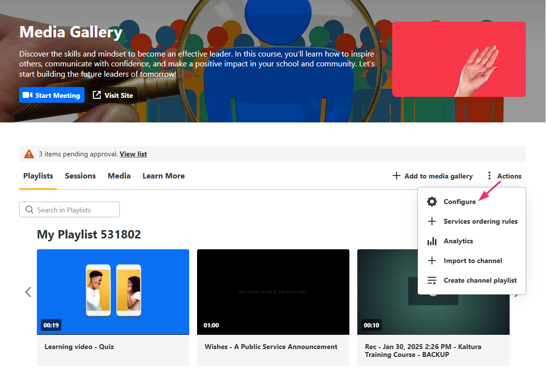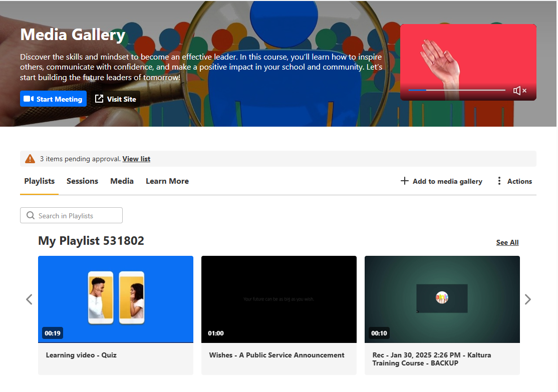 The media gallery is a centralized space in your course for organizing and sharing multimedia content. From video lectures to recorded sessions, the media gallery gives you control over how content appears to students.