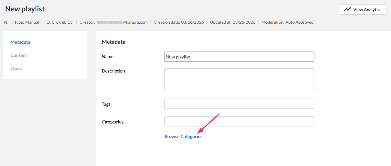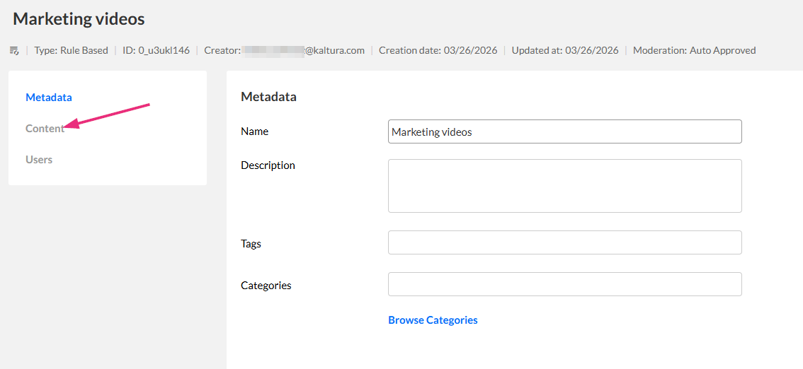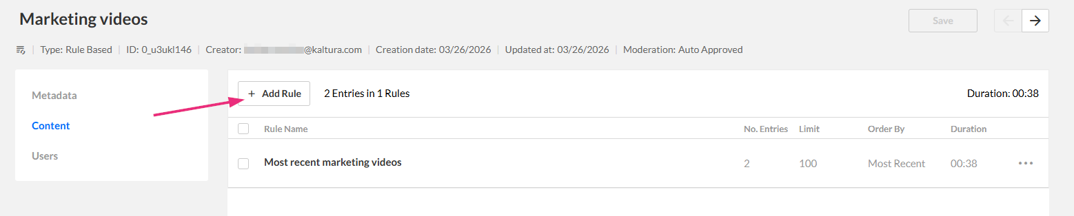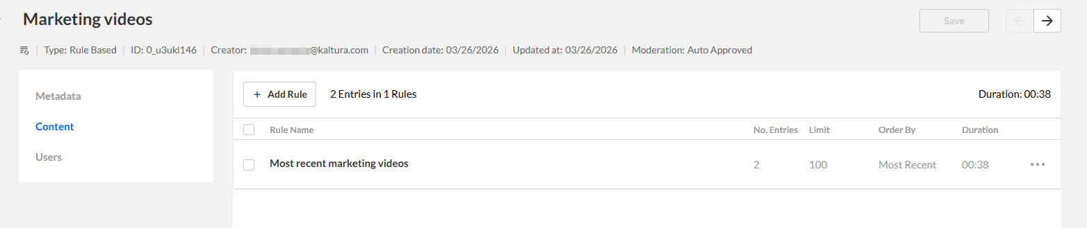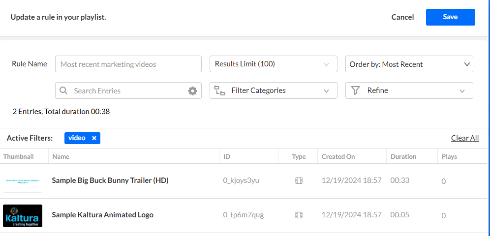 You can edit a rule-based playlist in the KMC to update its name, description, or the rules that define which entries appear.
