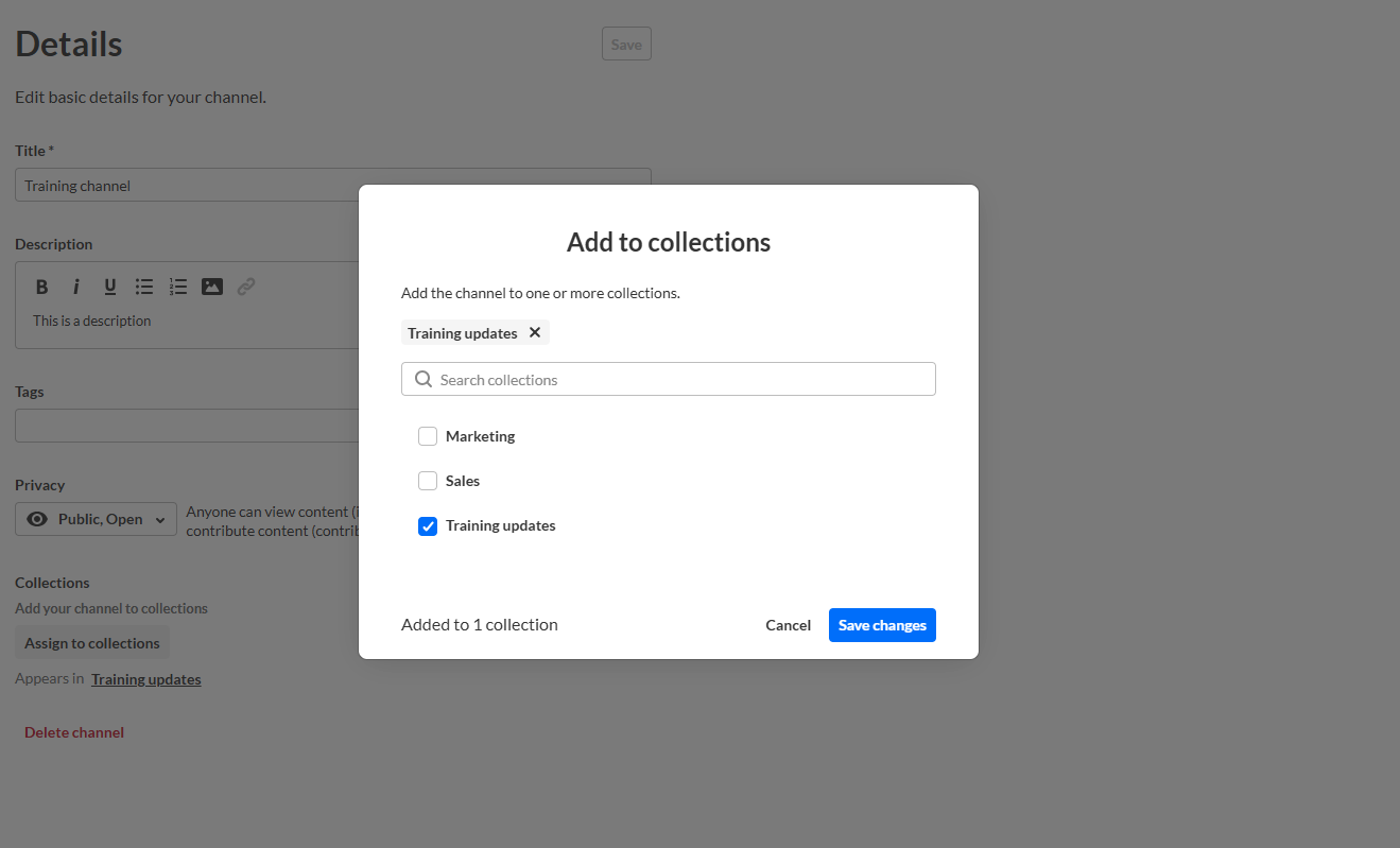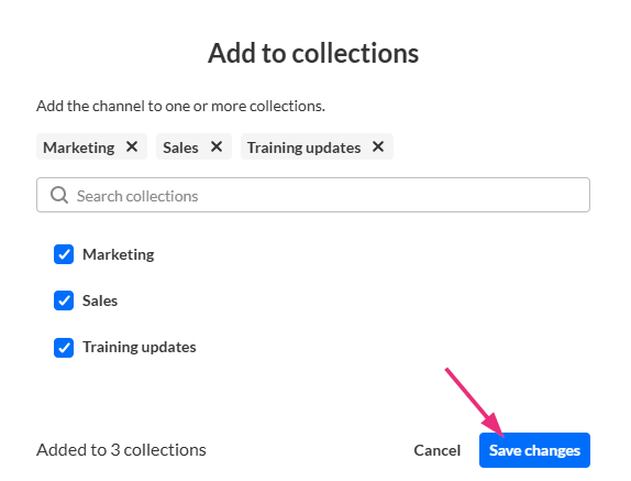 - In the window, select one or more collections (or clear selections to remove it from collections), then click Save changes.