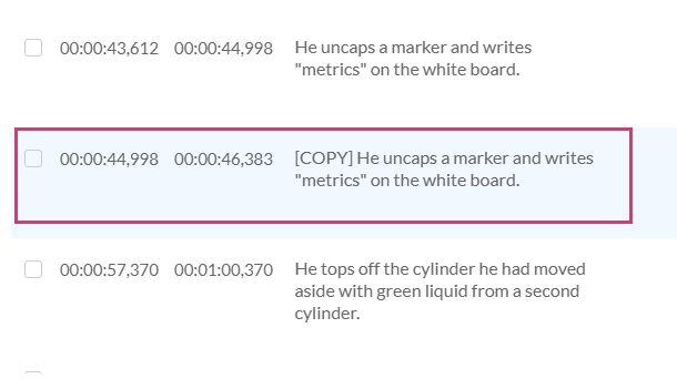 - Timestamp - Click a cue’s timestamp to edit the start or end time.