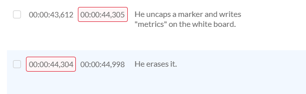 When editing audio descriptions, you may also need to adjust their timing so everything stays in sync. Because audio descriptions are active from their start time until their end time, they’ll still be read out loud if a viewer skips to any moment during that period.