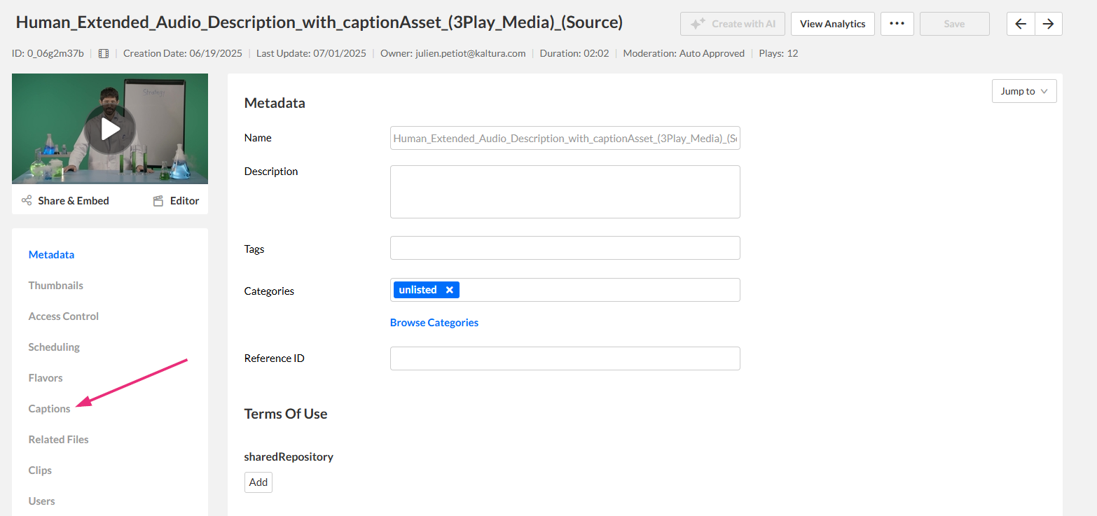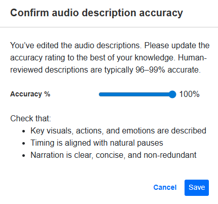 - Edit details - Click 'Edit details' to update the audio description’s language, accuracy, or label.