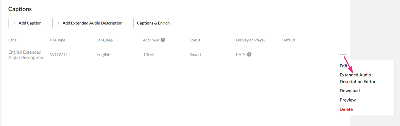 - Click the three-dot menu at the far right and select Extended Audio Description Editor.