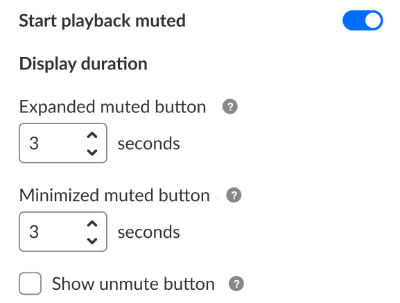 You can configure the period of time both muted indicators remain visible to the viewer and whether or not the Unmute button is visible to the viewer.