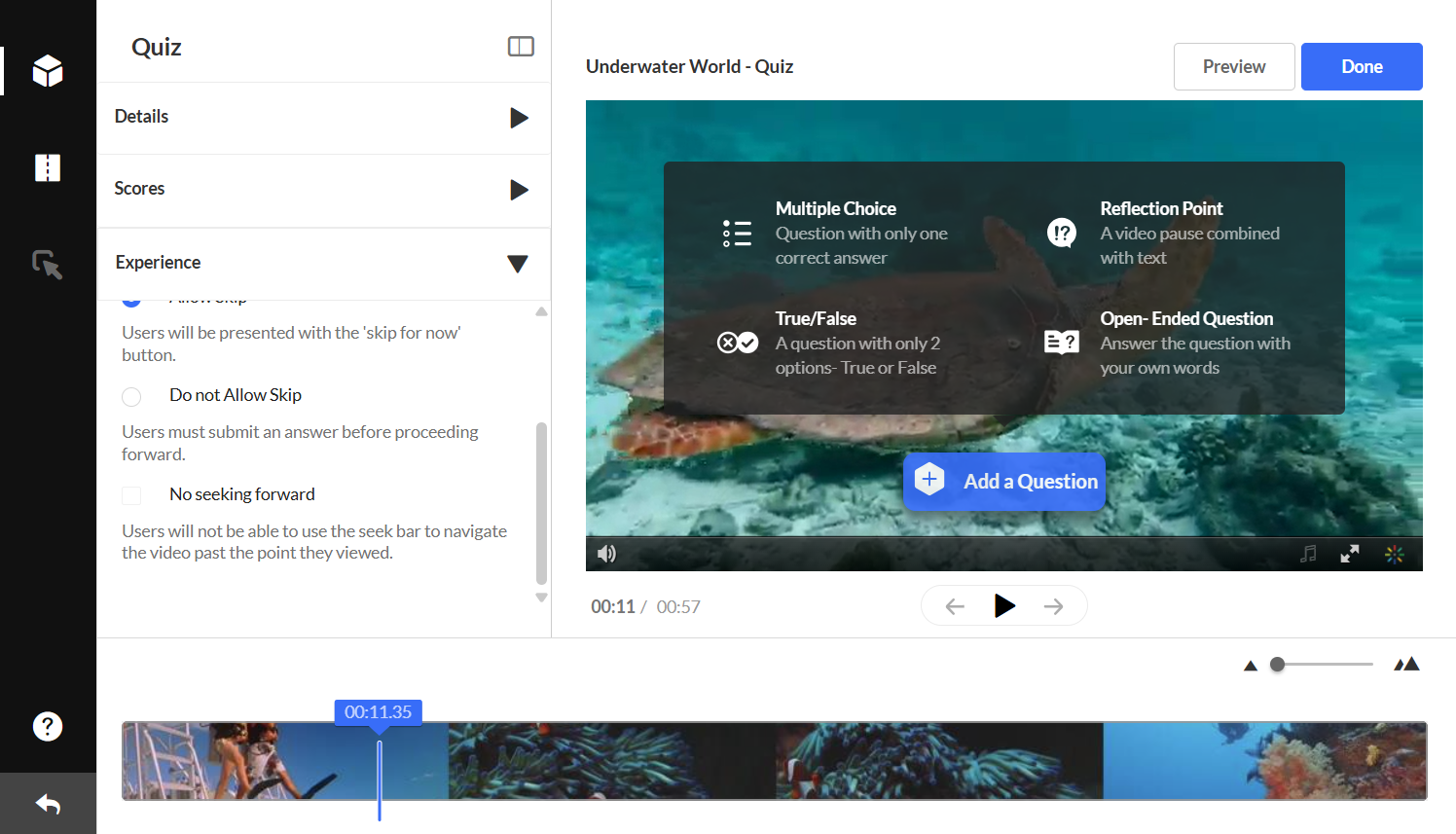 This guide shows you how to add multiple choice, True/False, open-ended, and reflection questions to your video quiz, making it more interactive and engaging.