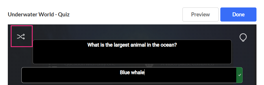 After you have typed in the answer options, use the shuffle icon to shuffle the answers.