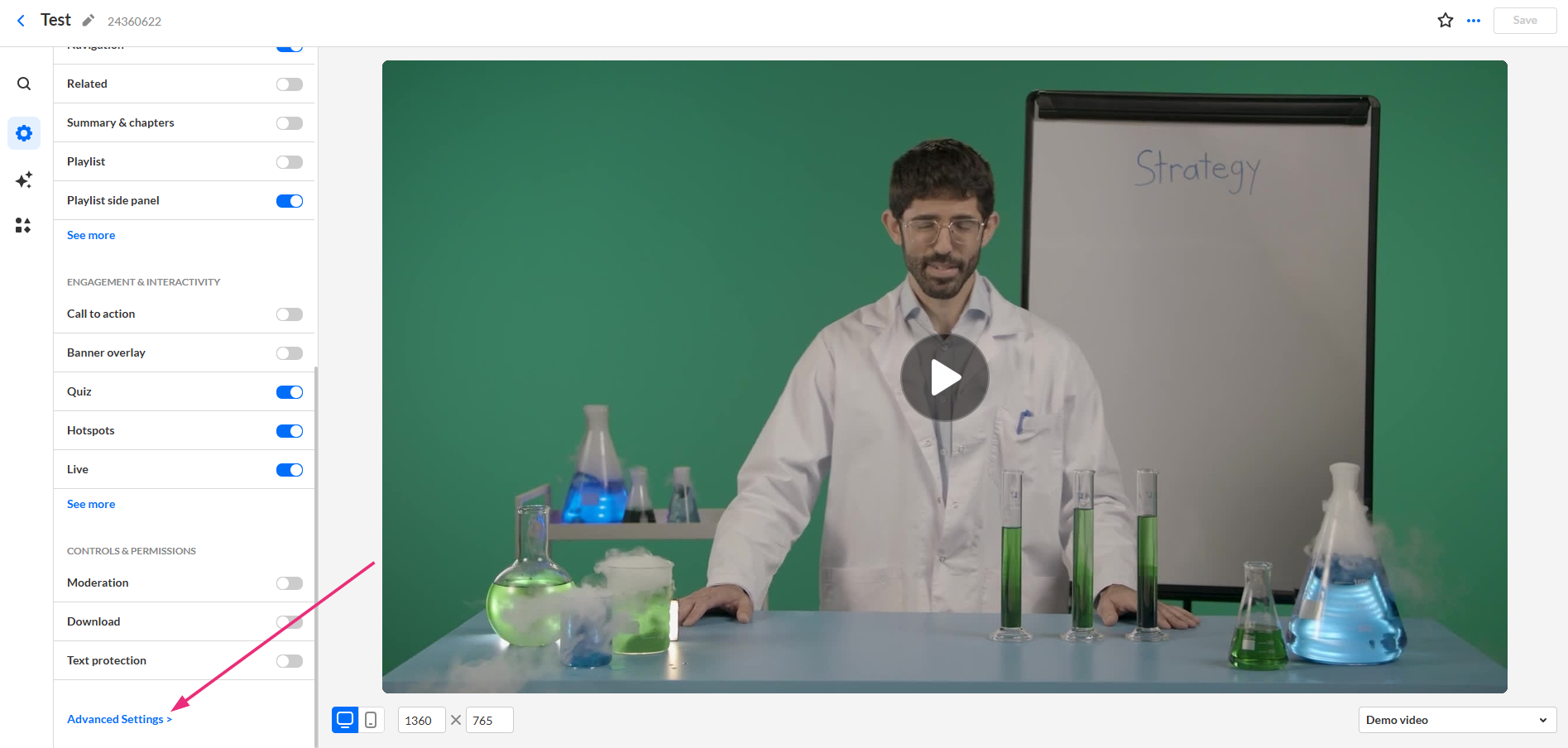 - Scroll to the bottom of the player settings and click Advanced Settings.