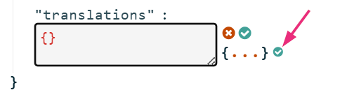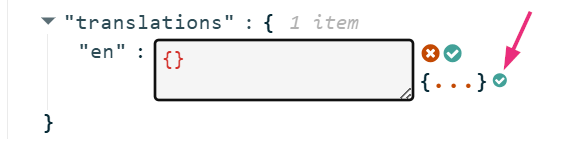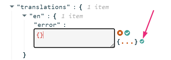 - Replace null with { }, then click the small green checkmark.