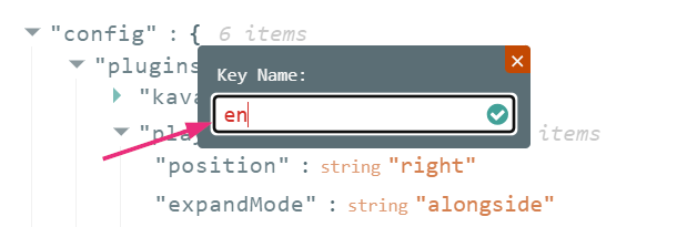 - In the Advanced Settings tab, hover over "ui" and click the green + icon.