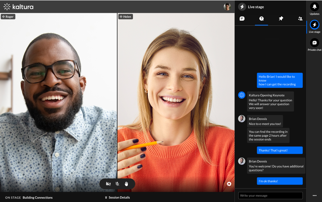 During the event, other than connecting with each other, attendees can engage and ask speakers or event moderators questions via the Q&A tab of the Live stage. This functionality improves interaction and exchange of information among speakers and attendees, thus encouraging discussions and boosting attendee engagement.
