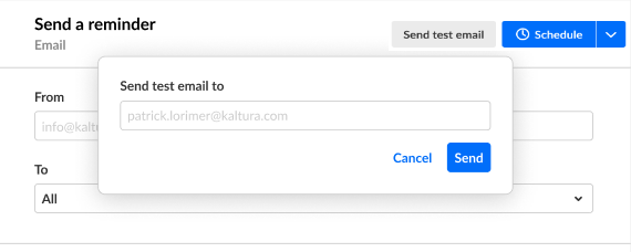 - If you would like to send a test email to yourself to check the appearance, click Send test email, then click Send.
