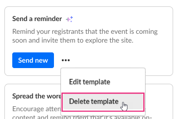 - On the Templates tab, under Custom templates, choose Delete Template from the three-button menu located in the desired custom email box to delete the custom template.