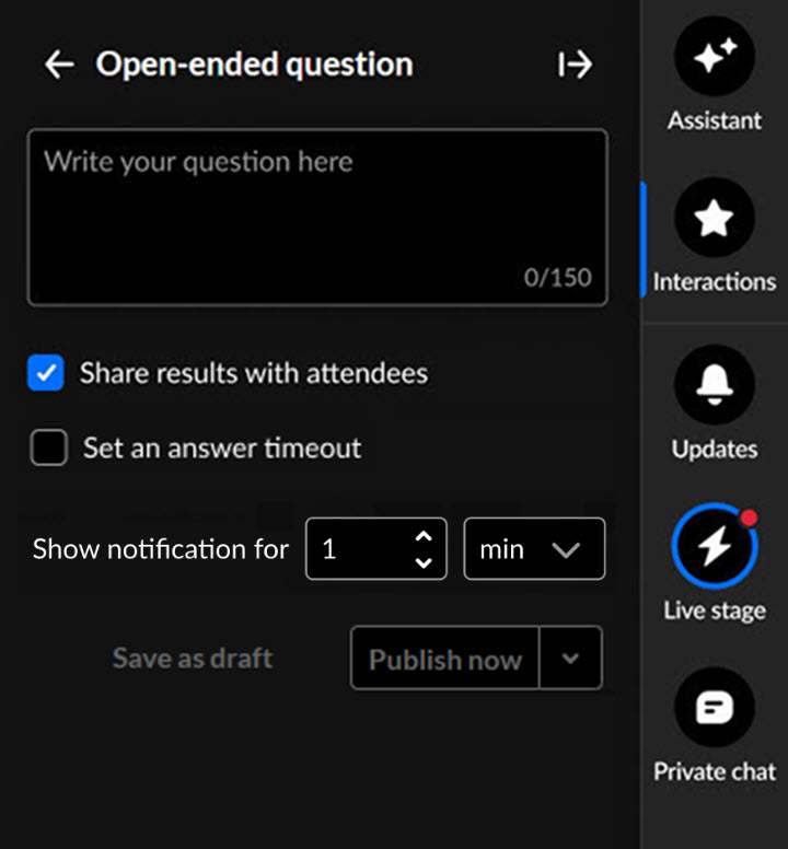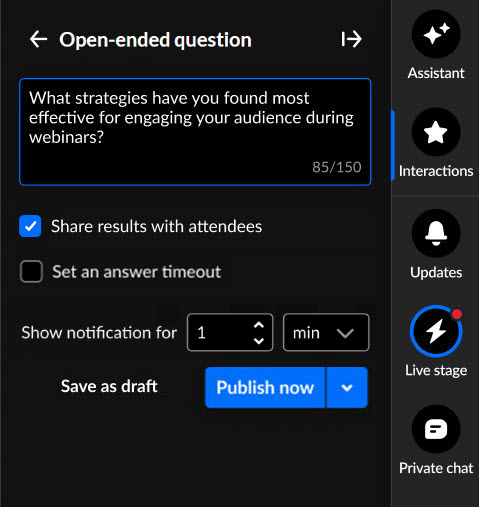 Create and publish an open-ended question from the Interactions tab of the Chat and Collaboration widget