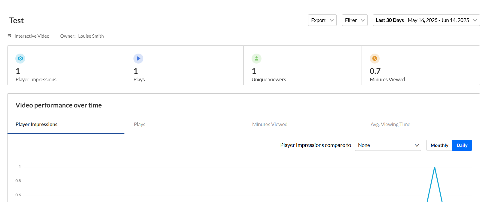 Use the chart to explore trends in impressions, plays, and viewing time.