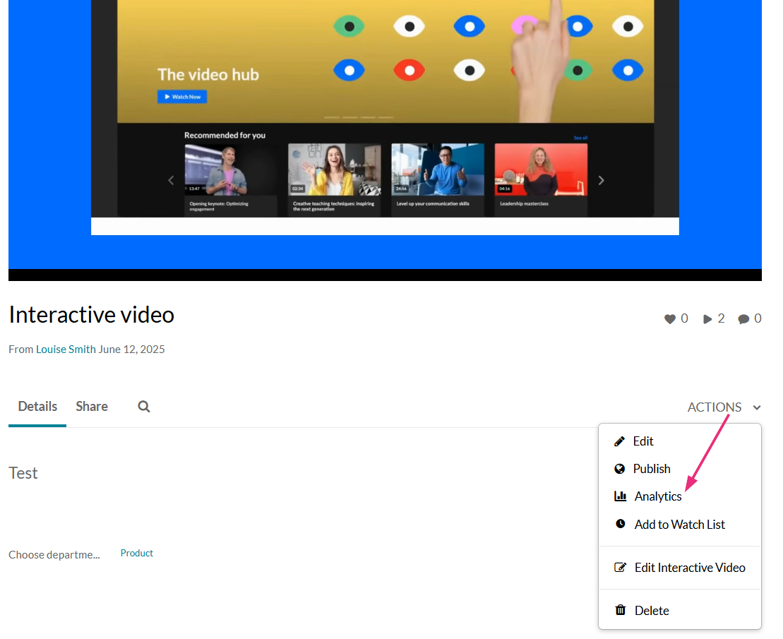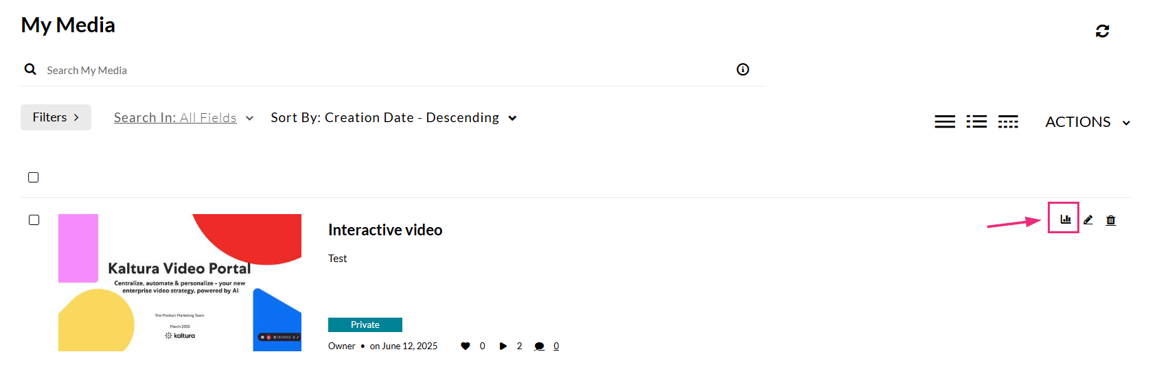You can view analytics for interactive videos in both the Kaltura Management Console (KMC) and the Video Portal.