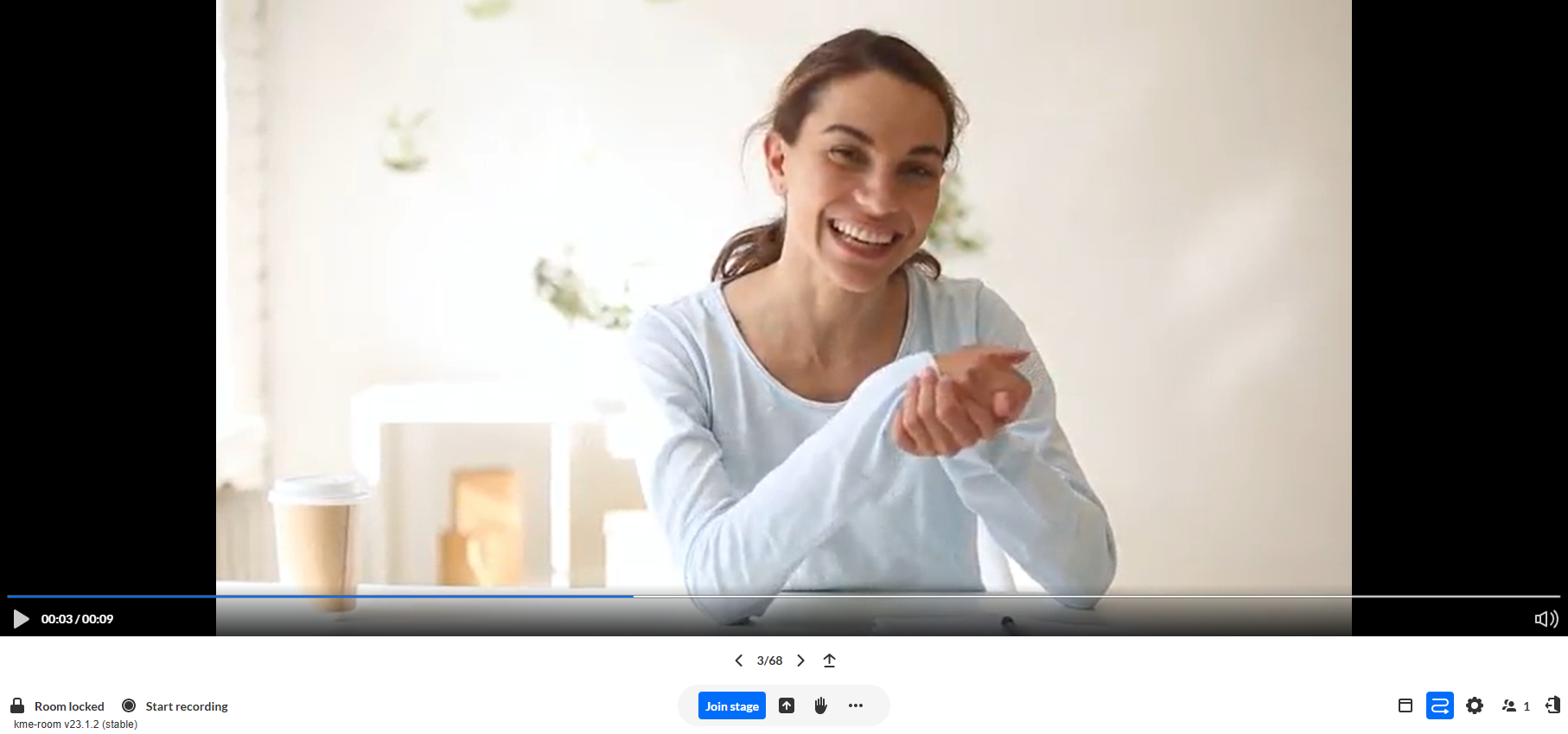 The Kaltura Room is a real-time meeting space designed for collaboration, training, and live sessions. It enables teams to meet, present, and interact using a range of engagement and collaboration tools.