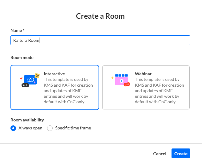 Create a Kaltura Room