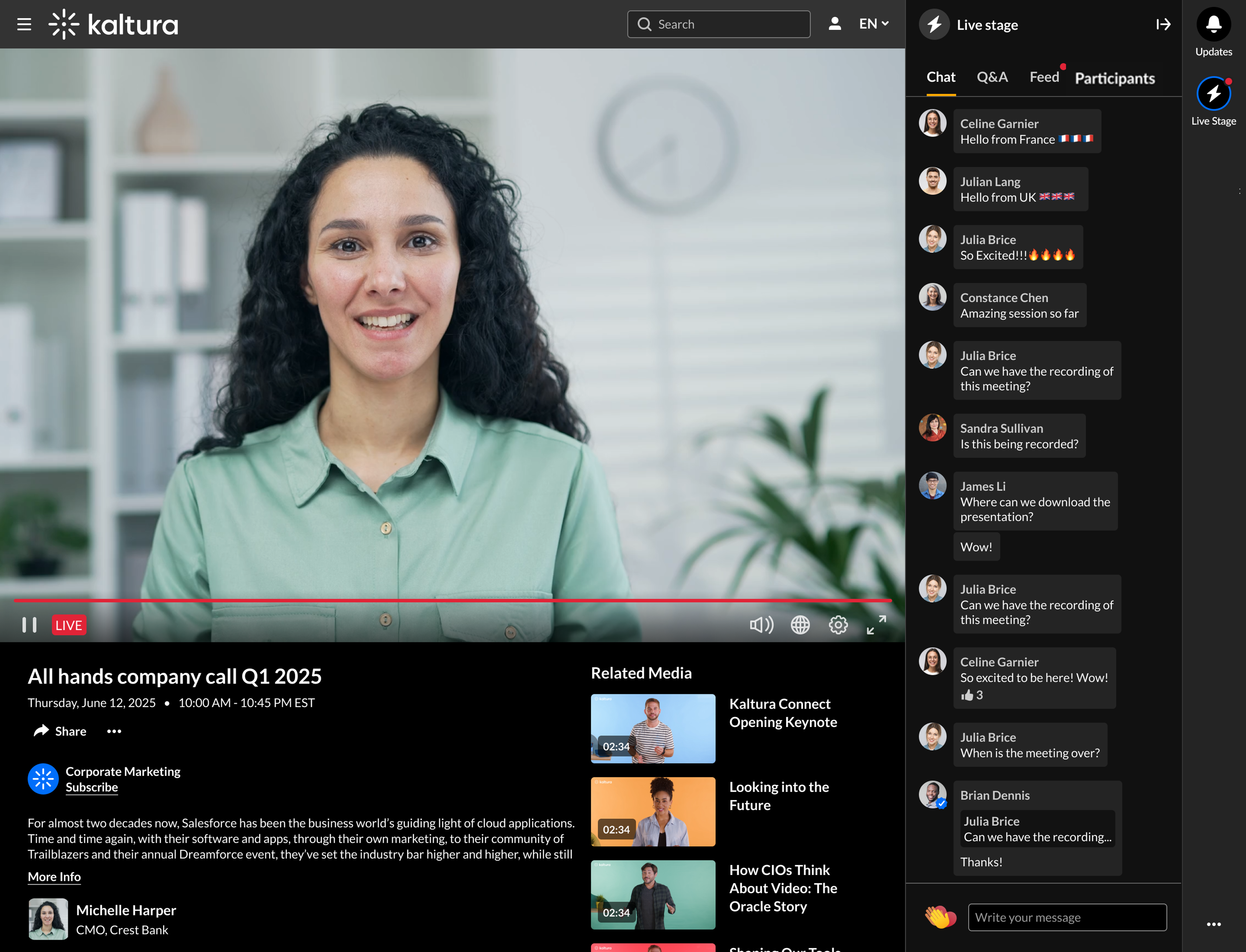 Live Studio is a live event type in Video Portal that gives all participants a single way to join. The system recognizes each person’s role and shows the right view automatically.