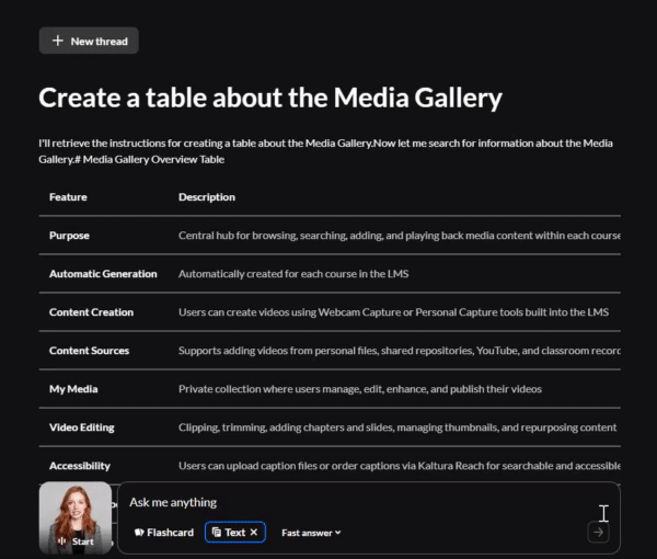 You can also use the answer format buttons to choose Flashcard or Text, request a specific format in your question (for example, “Show this as a table”), or ask Genie to switch formats after the fact.