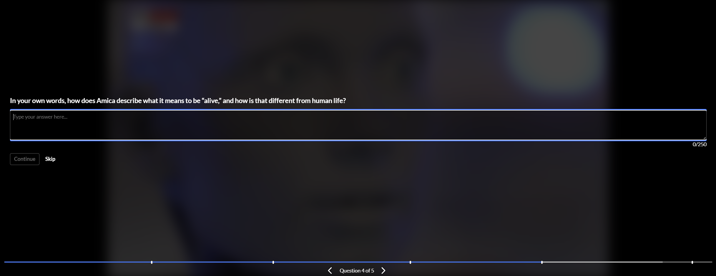 - Select an answer, then click Continue to save it. A greyed-out button means the answer has been recorded.
