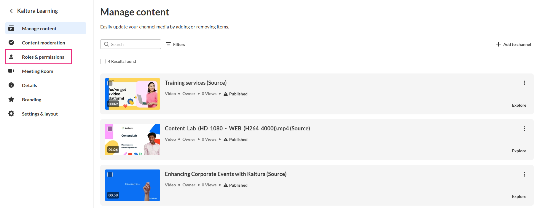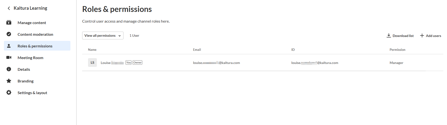 You can manage who has access to your channel and what they can do from the Roles & permissions tab.