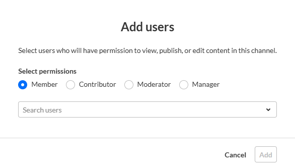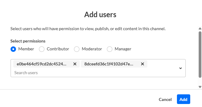 - Manager - Has full control of the channel, including managing content, users, and settings.
