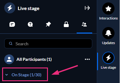 The number of people on the stage is monitored automatically, and the moderator can see this number in the participants list.