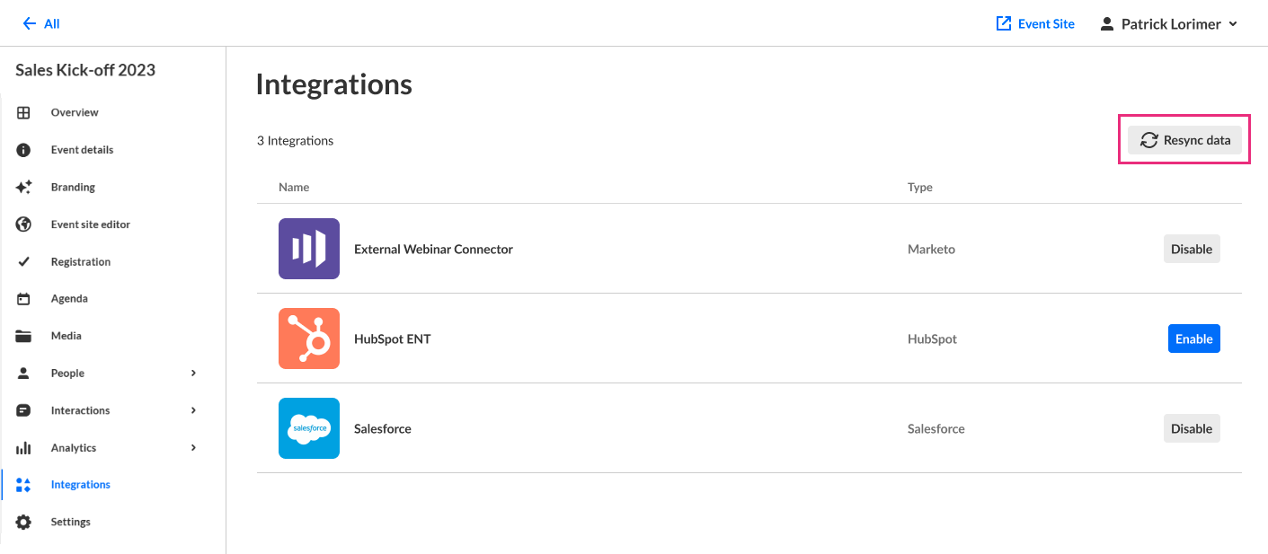 - Click the Resync data button to manually sync all active/enabled integrations.