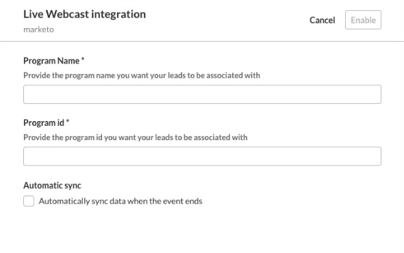 Kaltura Marketo integration supports program based leads. Each registrant is sent to Marketo as a lead with their registration information which can be later updated with their attendance and engagement data.