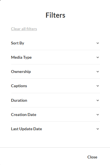 Use filters to narrow the moderation list and focus on the content you want to review. Filters are especially useful when moderating large volumes of media.