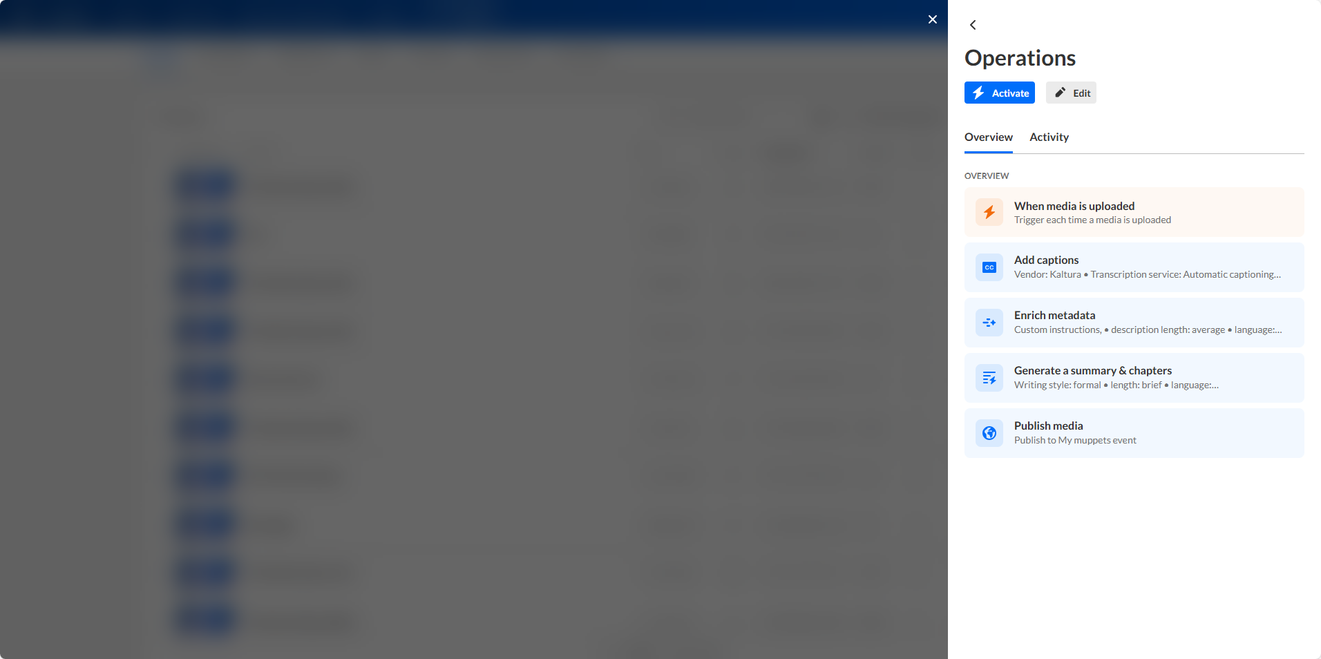 - If you want to use REACH-based actions (such as captions, moderation, or audio description), your account must have an active REACH profile with the relevant catalog item(s).