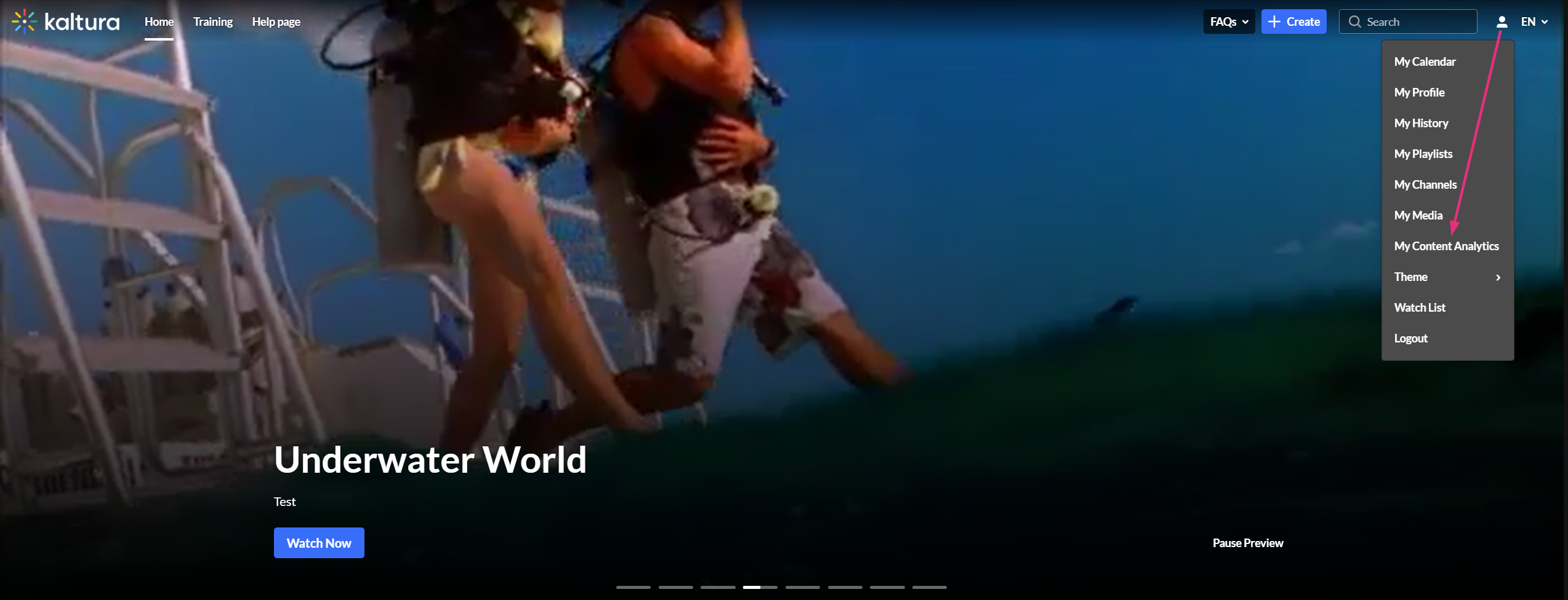 If this option is missing from the user menu, please ask your administrator to configure it by referring to the Enable My Content Analytics article.