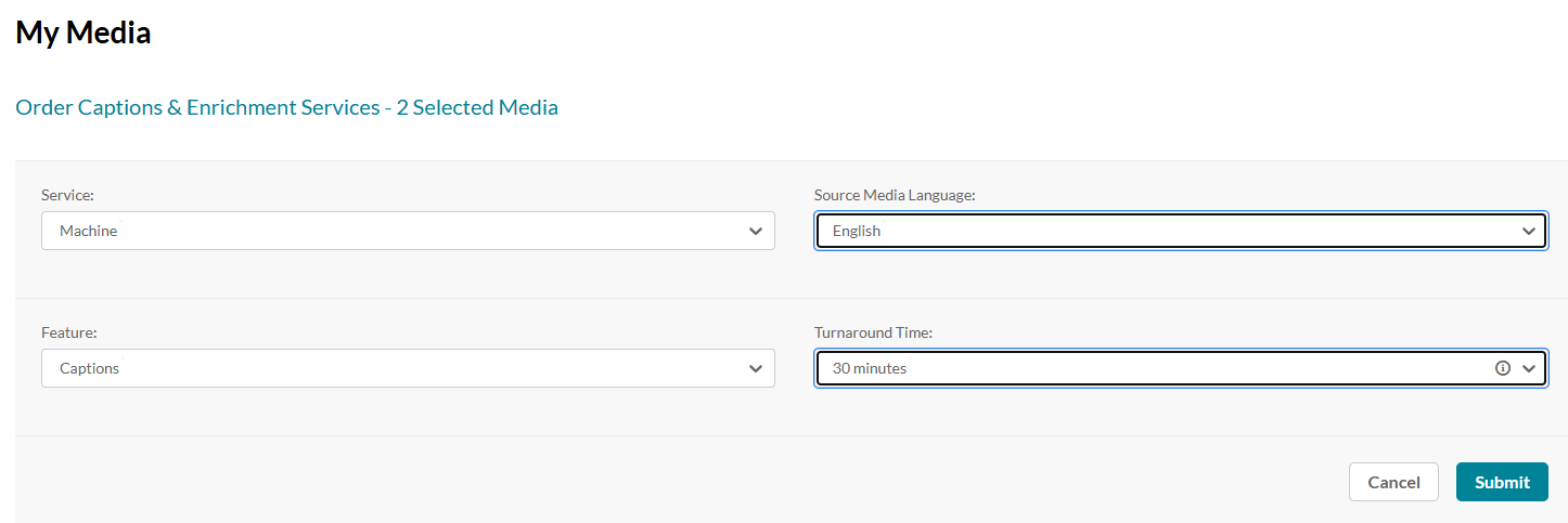 - Please note that captions must be ordered in the same language as the video's source language. For example, if the video is in English, you can only order English captions.