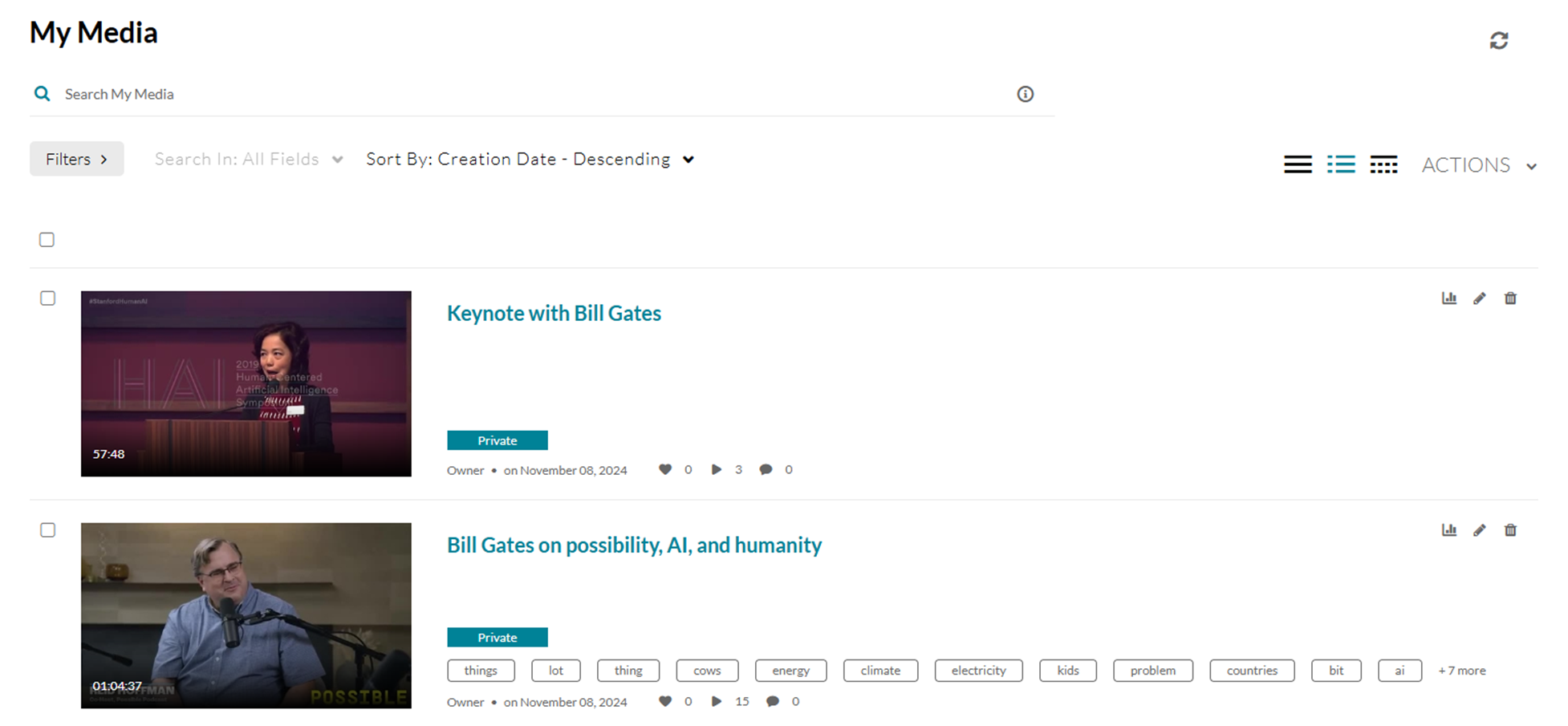 2. On the My Media page, click the desired media's thumbnail.