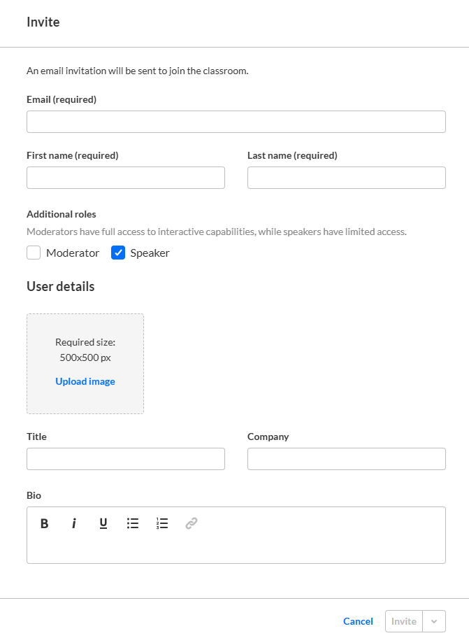 - Invite speakers to your virtual classroom.