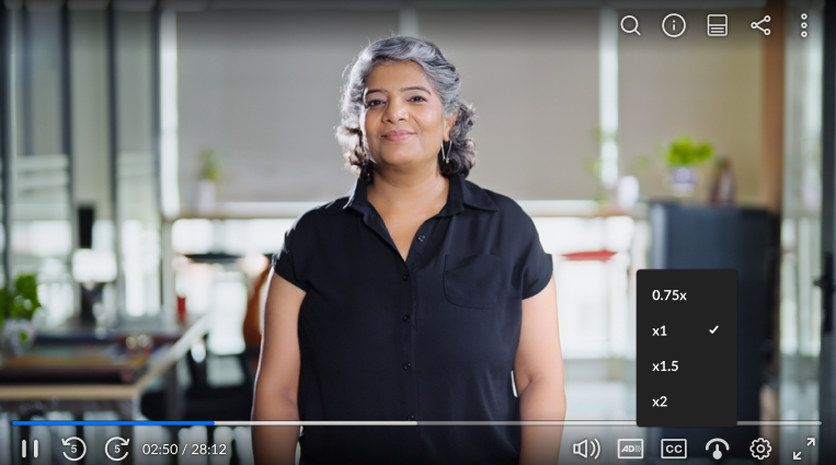 - Change playback speed either from the player controls or from the settings menu, depending on how the player is configured