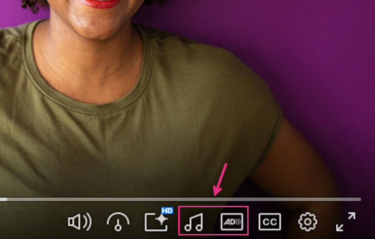 - Grey Audio Description selector button = No audio descriptions are available for your language.