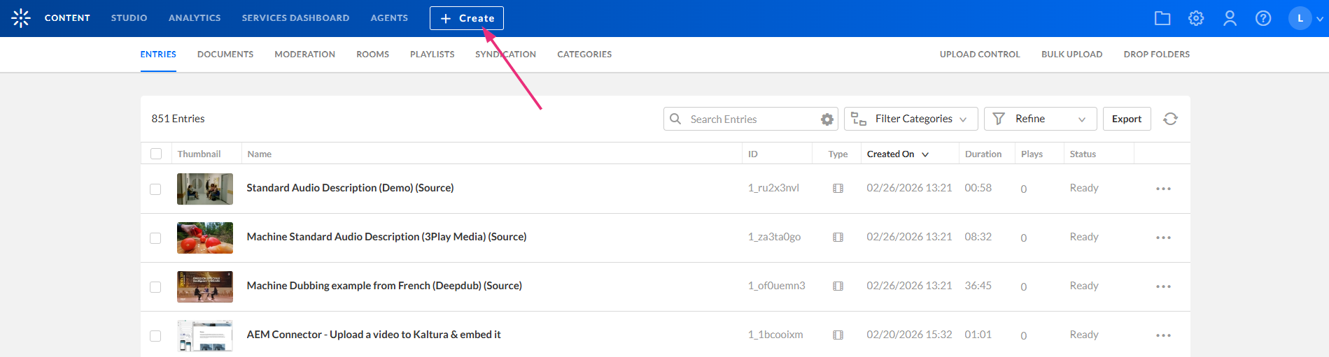 For bulk uploads larger than 5,000 entries, contact your Kaltura representative.