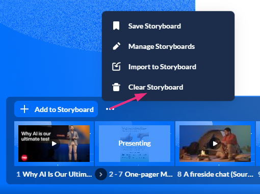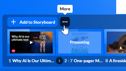 - On the storyboard, next to the Add to storyboard button, click the three dots.