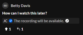Speakers and Moderators have the following additional capabilities in the Q&A tab.