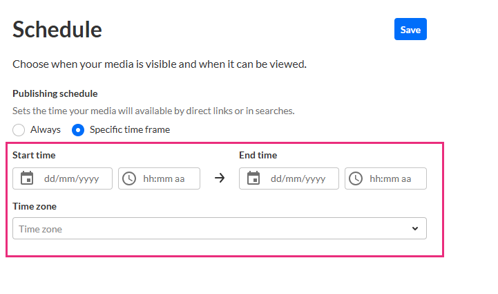 Scheduling media in Kaltura's Video Portal allows you to control when your content becomes viewable to your audience.