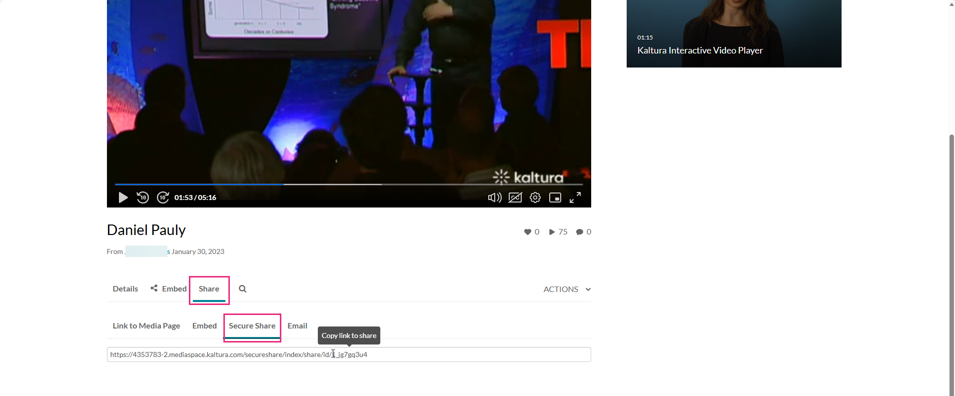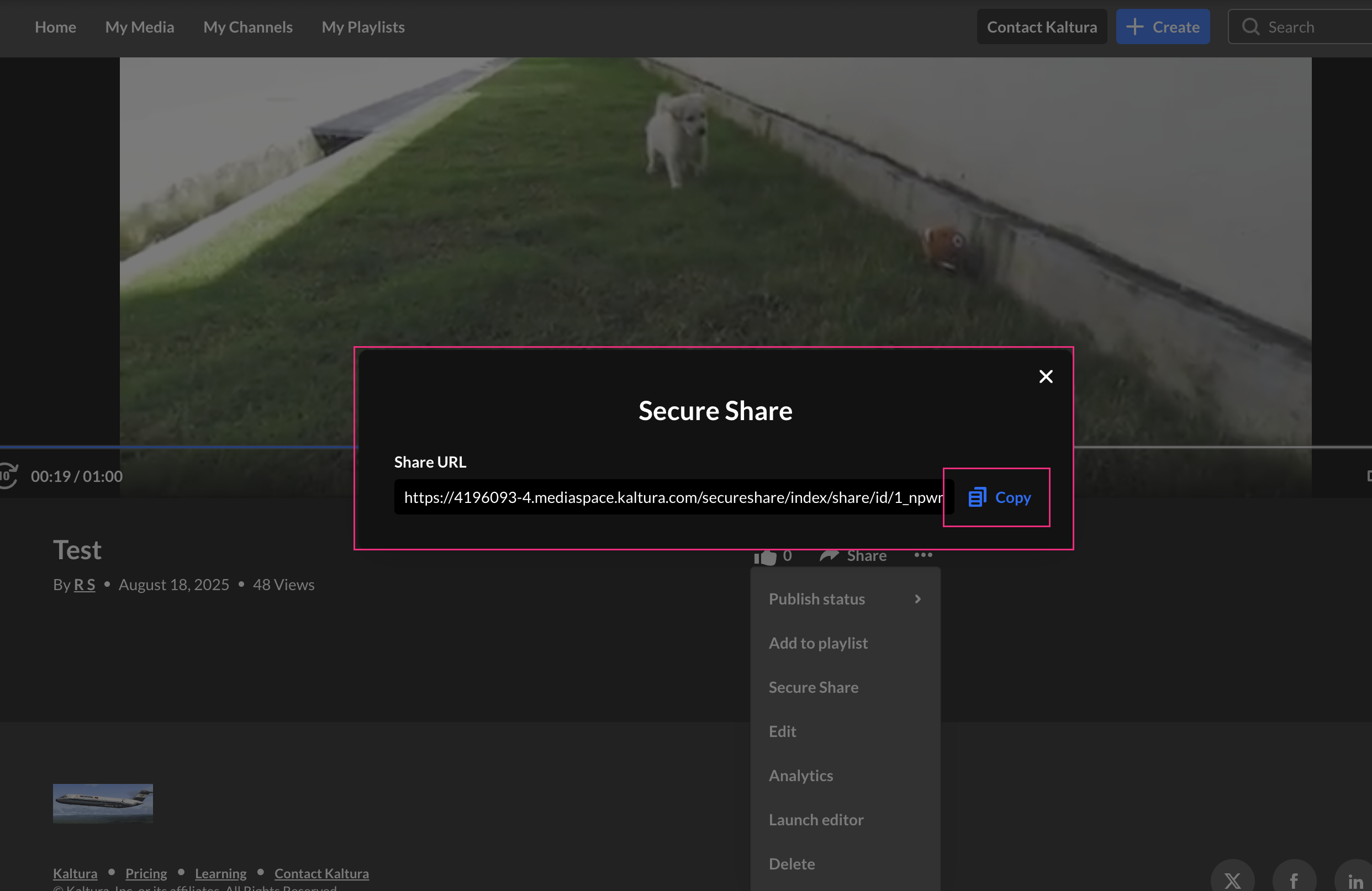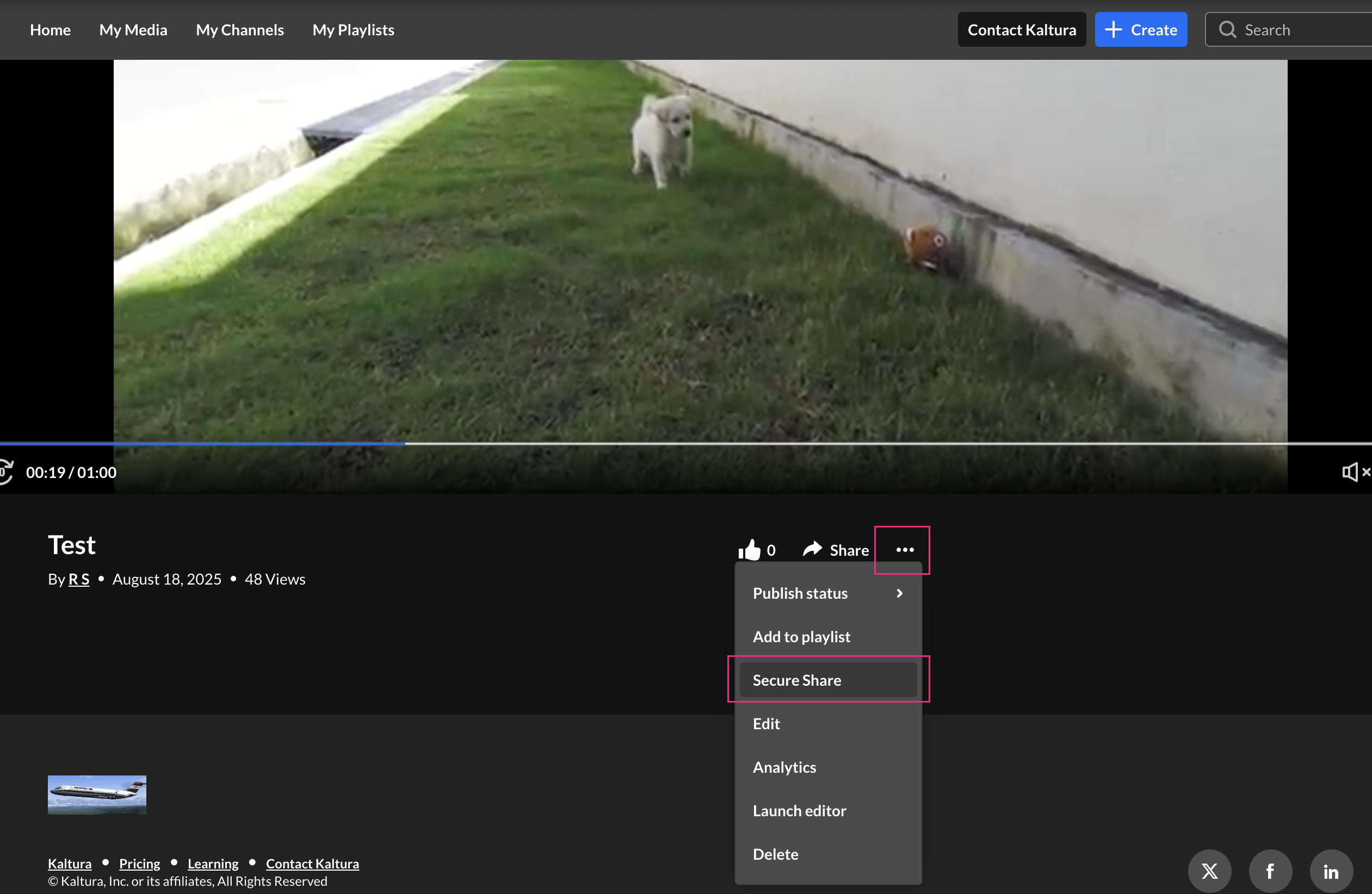 Log into your video portal and navigate to a media's Entry page. If you need help logging in and accessing media, please follow the instructions in Log into your video portal and My Media.