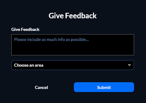 - Click the settings icon at the bottom right of the screen and select Give feedback from the menu.