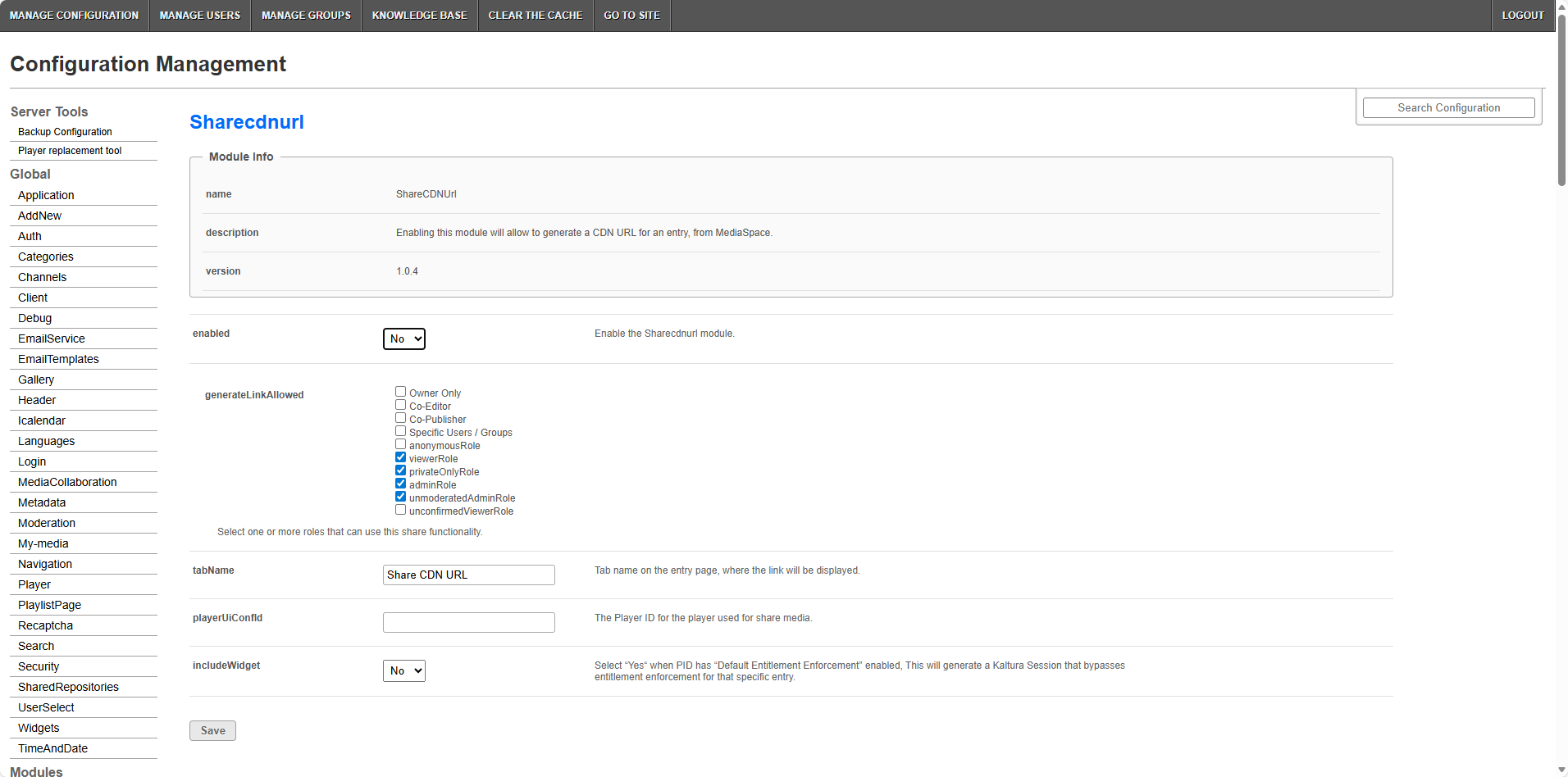 This guide explains how to enable and configure the sharecdnurl module in the Configuration Management console.