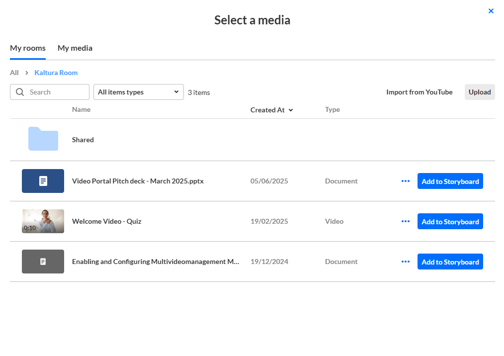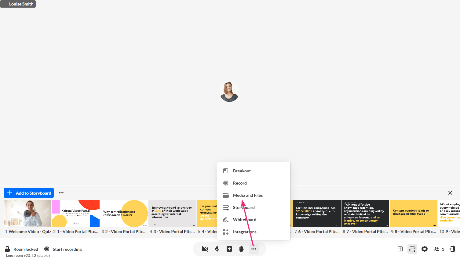 For instructions on presenting files from the storyboard, visit our article Use the storyboard during a session in your Kaltura Room.