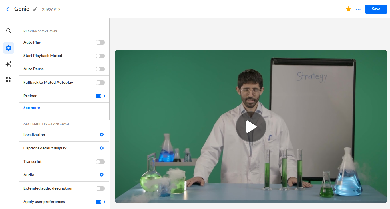 - Expand on first play - If enabled, the Genie panel automatically opens the first time the video is played. Viewers can close it at any time.