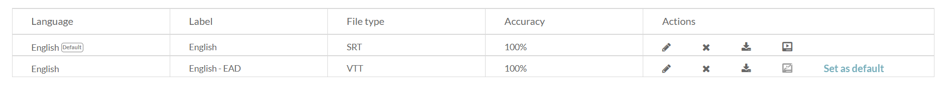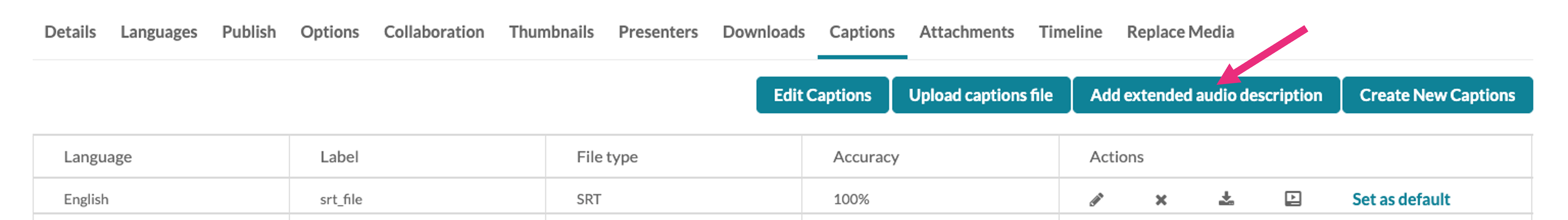 In Kaltura’s Video Portal, you can upload extended audio description (EAD) files for media you own or have editing privileges for.